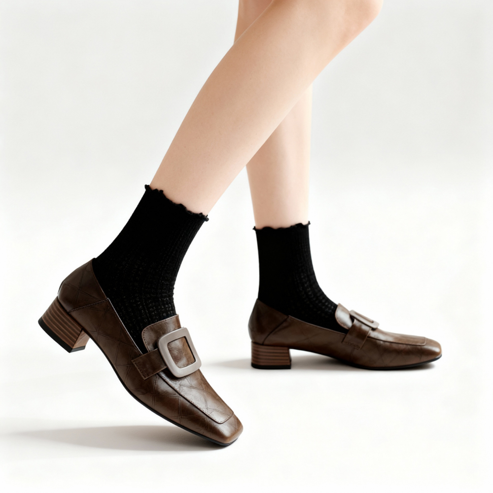 Chunky Heel Square Toe Shoes