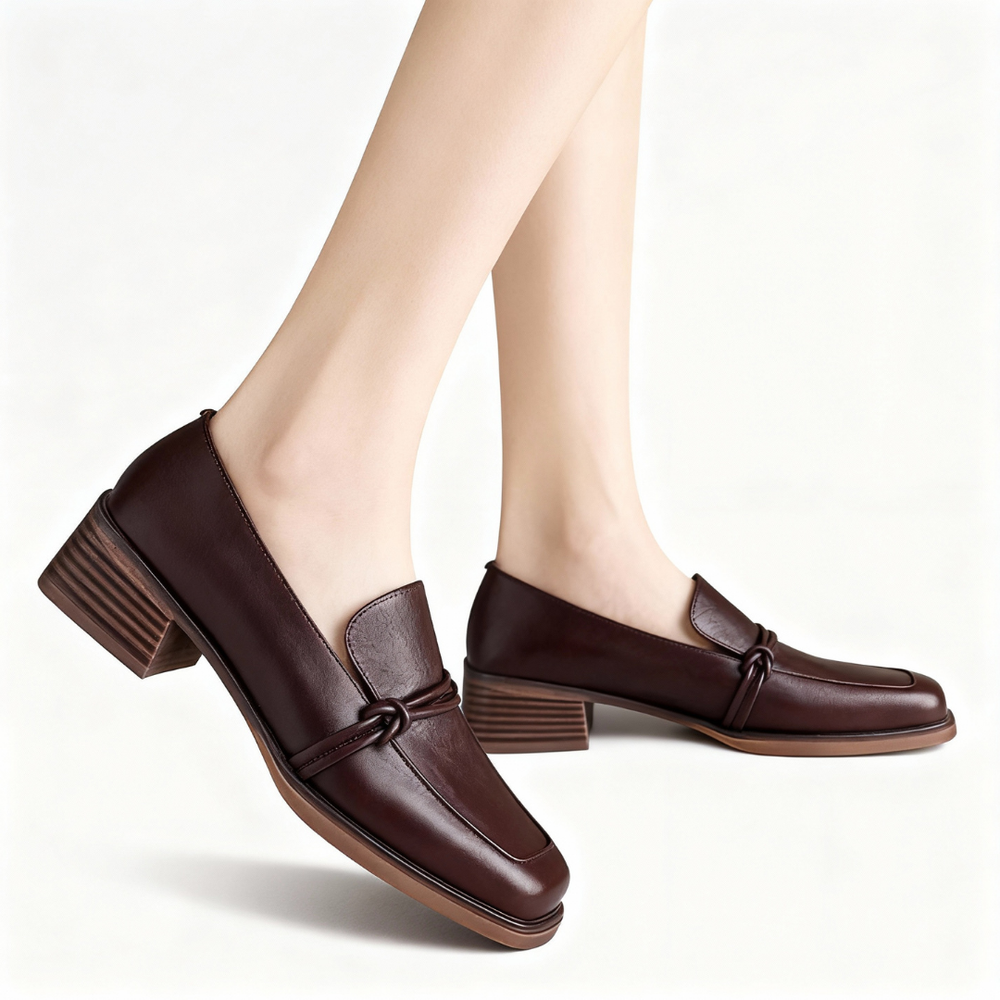 Square Toe Chunky Heel Loafers