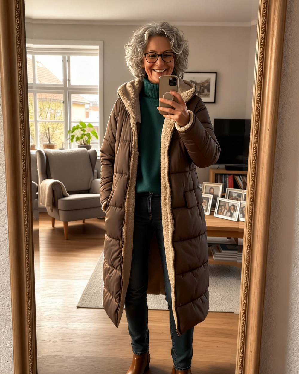 This coat has completely transformed my winter wardrobe. The olive green colour is stunning and matches everything. It's long enough to keep me fully covered but doesn't trail or feel cumbersome. The sherpa collar is my favourite element — so snug around my neck. I actually look forward to venturing outside now!